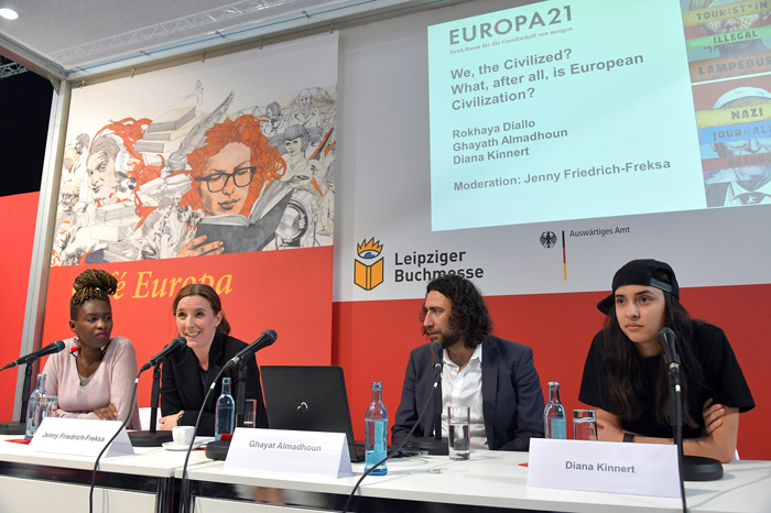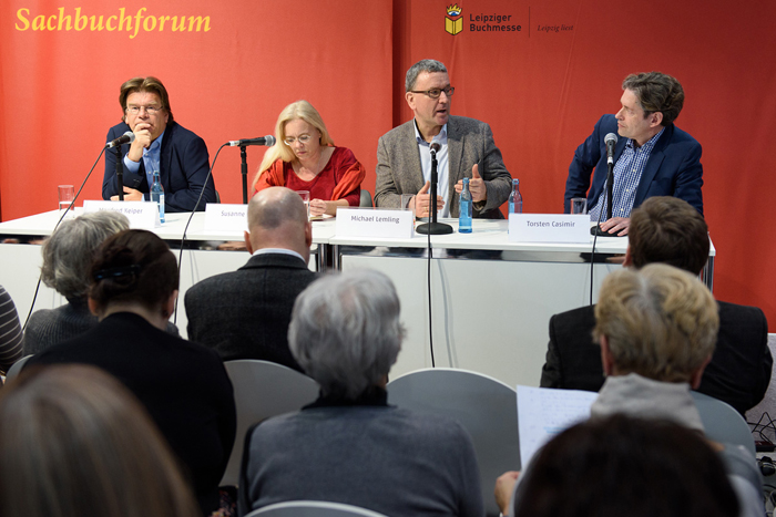 Im taz-Studio diskutierten Lisa Mangold, Jörg Braunsdorf (Tucholsky-Buchhandlung, Berlin) und Daniel Kraft (Bundeszentrale für politische Bildung) über den Umgang mit einer neuen gesellschaftlichen Situation – nicht nur die Buchmessen werden zunehmend zu Orten der Auseinandersetzung. Braunsdorf, der nach Neonazi-Aufmärschen in Mitte eine Anwohner-Initiative gegründet hat, über die kürzlich sogar die New York Times berichtete, mag nicht mehr in Dauerschleife über rechte Ideologien reden, nicht dauernd “Nein!” sagen: “Wenn nötig, setzen wir uns schon auch auf die Straße. Aber wir haben 365 Tage im Jahr – und viele, viele Möglichkeiten, unsere eigenen Lebensentwürfe in den Vordergrund zu schieben.” Daniel Kraft findet lobende Worte für die Organisatoren der Buchmesse: “Allein schon das Konzept von Leipzig liest, die vielen Veranstaltungs-Inseln und Foren, ist eine Strategie, die immer Diskussionsräume geschaffen hat. Gemeinsam mit anderen politischen Bildnern waren wir früh in die Messeplanung eingebunden, man hat uns einen ganzen Hallengang zur Verfügung gestellt, an dem wir sichtbar werden können. Dort werden in diesen Tagen genau die Themen besprochen, die auf der Straße liegen.”