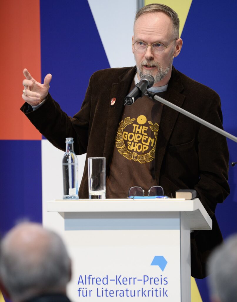 Dazu gab es auch weitere prominente Preisverleihungen wie die Vergabe des Alfred-Kerr-Preises für Literaturkritik an Dietmar Dath. Der hatte den vielleicht tröstendsten Satz der Messe für uns parat: „Stellen wir uns vor, die Literatur, an der uns liegt, inklusive ihrer literarischen Kritik, sei nicht ganz gesund. Stellen wir uns vor, sie habe sich hingelegt. Sie hat, glaube ich, Angst davor, wie es weitergeht. Der Beruf, ihr beizustehen, ist ein sehr schöner.“