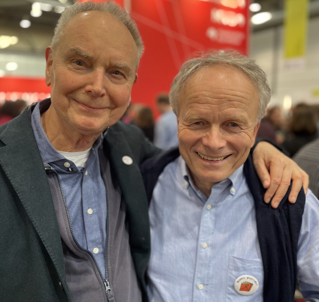 In Leipziger feierte eine solidarische Branche am Buchmesse-Donnerstag alle 118 Nominierten zum Deutschen Buchhandelspreis – und ein bisschen auch sich selber. Wie eine ganze Reihe von Verlagen – von Hanser, der seine Taschenbuchparty umwidmete, bis zu den Indies Bahoe, Ventil, Verbrecher und VQ, die ihr Traditionelles „Vorglühen“ am Stand ausweiteten – hatte man am Messedonnerstag um 17 Uhr zum Börsenvereinsstand in Halle 5 eingeladen, um mit den nominierten Buchhandlungen anzustoßen: genau zu der Zeit, zu der die Verleihung ursprünglich geplant war. Binnen weniger Minuten waren der Stand und die umliegenden Gänge rappelvoll, Sekt floss, Schnittchen-Tabletts kreisten, die Stimmung war aufgekratzt und tatendurstig. Gekommen waren zum Feiern und Flagge zeigen nicht nur Buchhändlerinnen und Buchhändler, sondern ebenso Verlagsvertreterinnen, Autoren und Autorinnen und Verlegerinnen und Verleger. „Das Wort mag nicht mehr besonders populär sein“, sagte Wunderhorn-Verleger Manfred Metzner, „aber was wir hier machen, ist ein Akt der Solidarität“. Metzner ist mit seinem Freund Thedel von Wallmoden quer durch die Republik zu den Orten der Preisverleihungen gereist – nach Frankfurt/Oder, Heidelberg oder Hannover. „Wir sind hier, weil die Buchmesse eigentlich eine der schönsten Gelegenheiten ist, gut gelaunte Buchhändlerinnen und Buchhändler zu treffen“, so von Wallmoden. „Das heutige Treffen hat allerdings Symbolcharakter. Wir sind da, obwohl die Veranstaltung abgesagt wurde – wir missbilligen den Grund dieser Absage.“ Verleger wie Metzner und von Wallmoden sind nicht die, die Großdemos organisieren und in Trillerpfeifen tröten – sie greifen eher zu Computer und Telefon, um Netzwerke zu aktivieren.